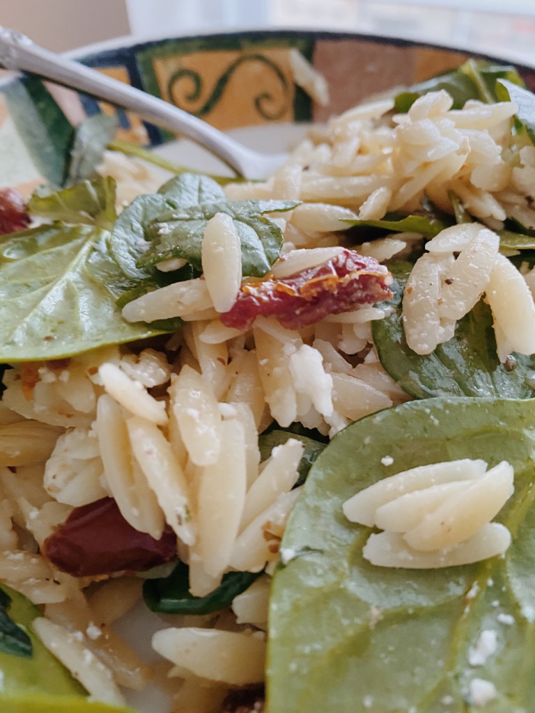 My mom sent me the recipe for the orzo salad I remember so fondly! And I was ~pretty~ close. One helpful tip I wanted to share was to not add the fresh greens until you’re ready to serve, that way they don’t wilt in the fridge and get droopy. Otherwise I did good! So you can too!