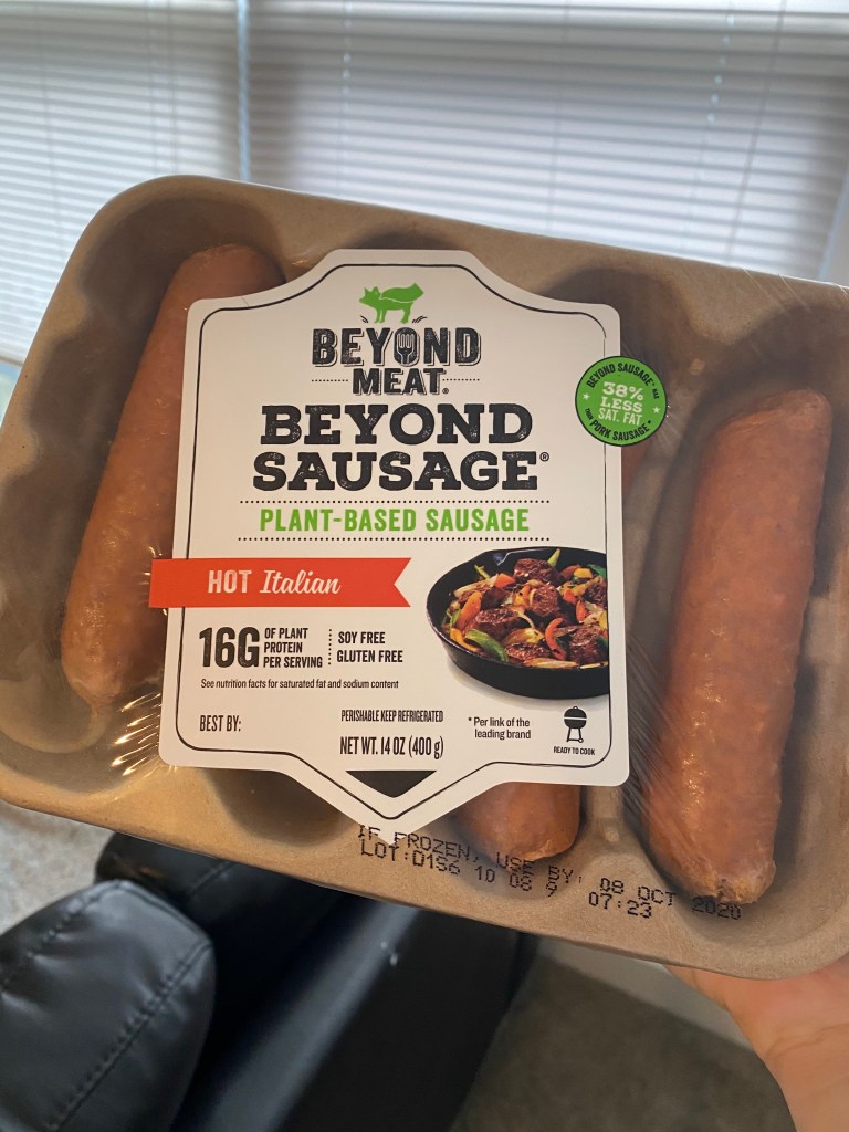 - This sandwich is brought to you by the Beyond Meat Hot Italian Sausage #notsponsored. Their entirely plant-based products taste like the real thing and really satisfy those cravings you might get every once in a while. Also it says they’re hot but they aren’t so good news if you hate spicy foods.