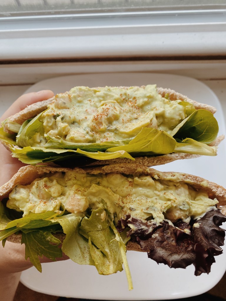 I had a predicament in my mind. How doth one createth a salad as creamy and luscious as an egg salad withouteth using doth eggs? Answer: avocado, yogurt, chickpeas, and a lotta flavor in the form of herbz. She’s undeniably creamy, definitely luscious, AND sustainable as all heck. Win Win Win.